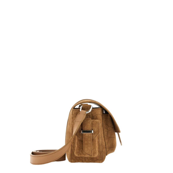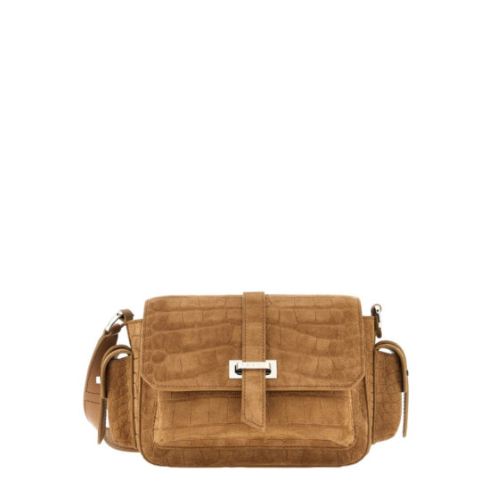 Borsa Flap in pelle scamosciata stampa coccodrillo
