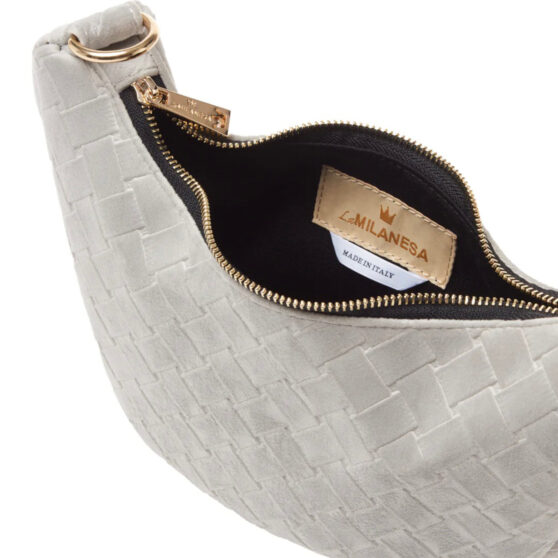 Borsa hobo Karem in tessuto intrecciato effetto velluto grigia