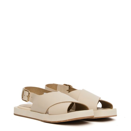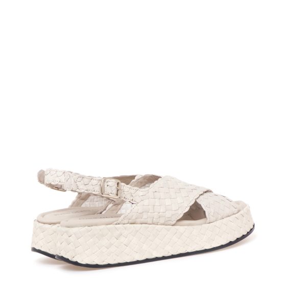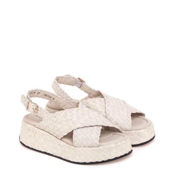 Sandalo 10829 in pelle intrecciata panna