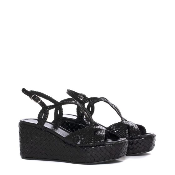 Sandalo 10280 in pelle intrecciata nera