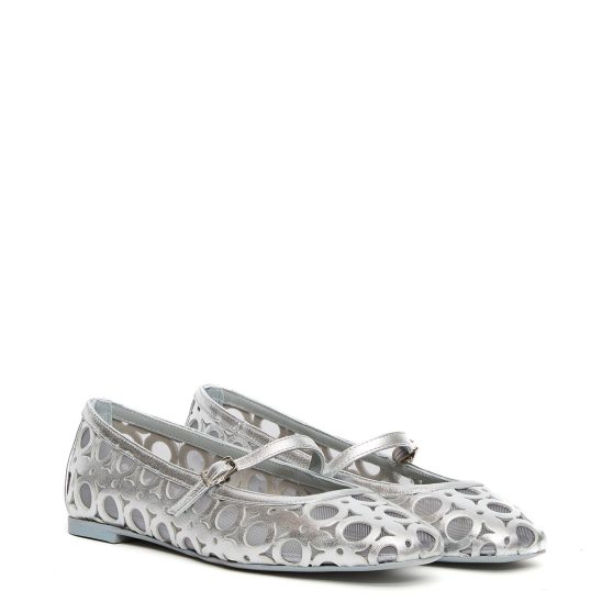 Ballerina Besset in pelle e tessuto argento