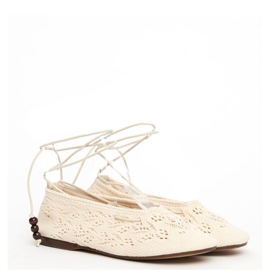 Ballerina in tessuto crochet con laccetto alla caviglia
