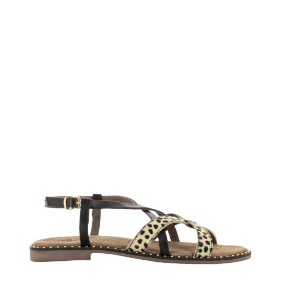 Sandalo 9172 in pelle scamosciata nera e pelle maculata