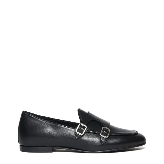 Ballerina PS18 in pelle nera doppia fibbia
