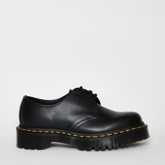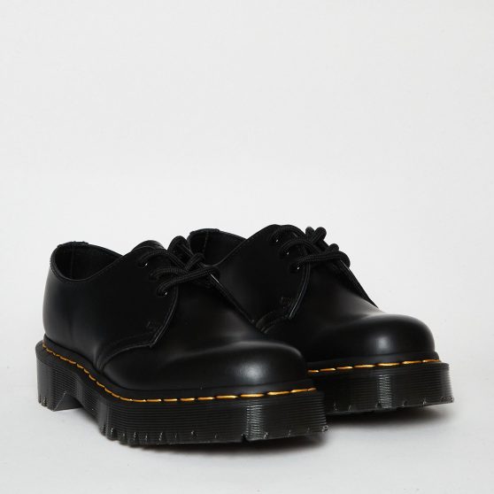 Stringata MERCER02 in pelle spazzolata nera