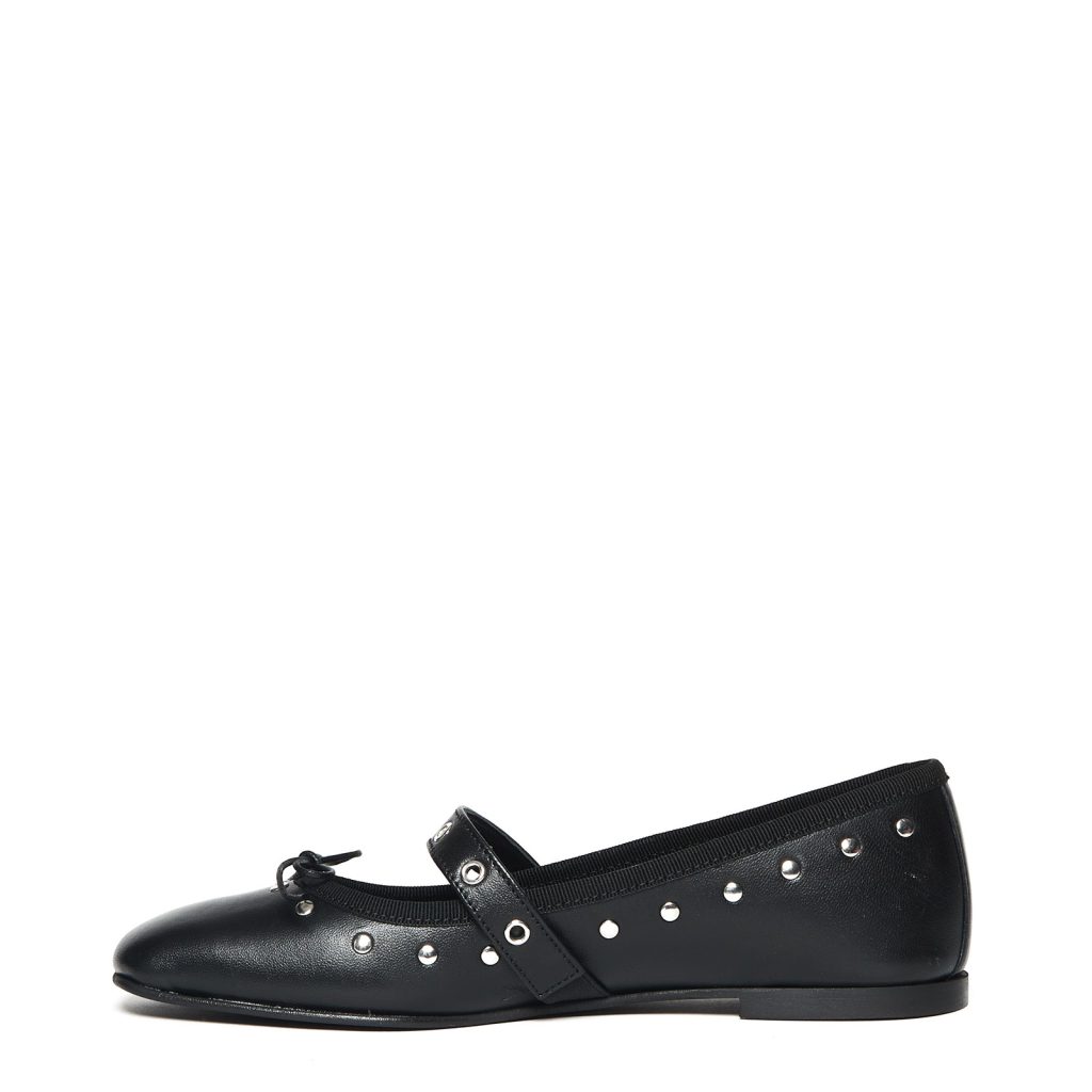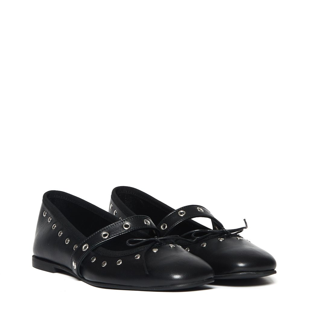 Ballerina in pelle nera con applicazioni quantity
