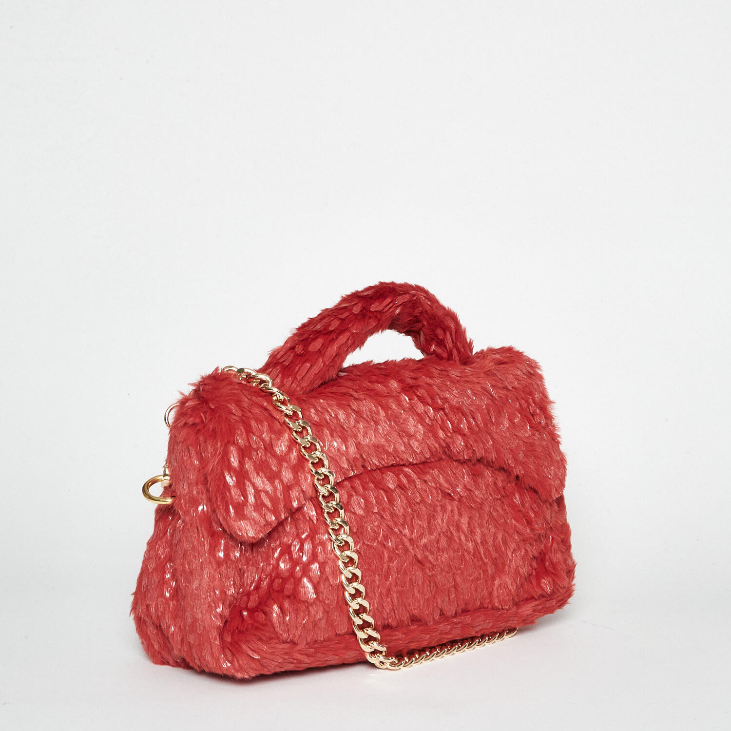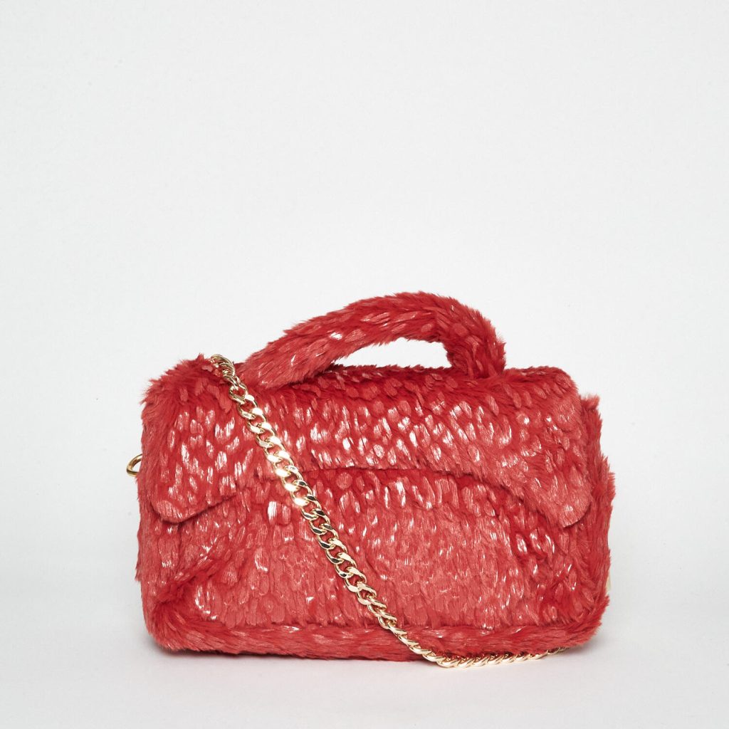 Borsa a mano in ecopelliccia rossa