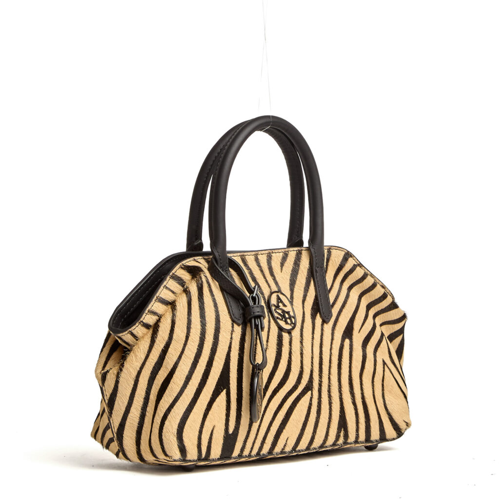Realizzata in pelle zebrata effetto cavallino.