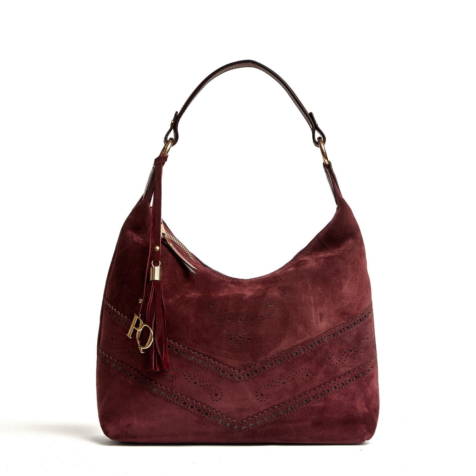 Borsa a spalla V170 in pelle scamosciata bordeaux