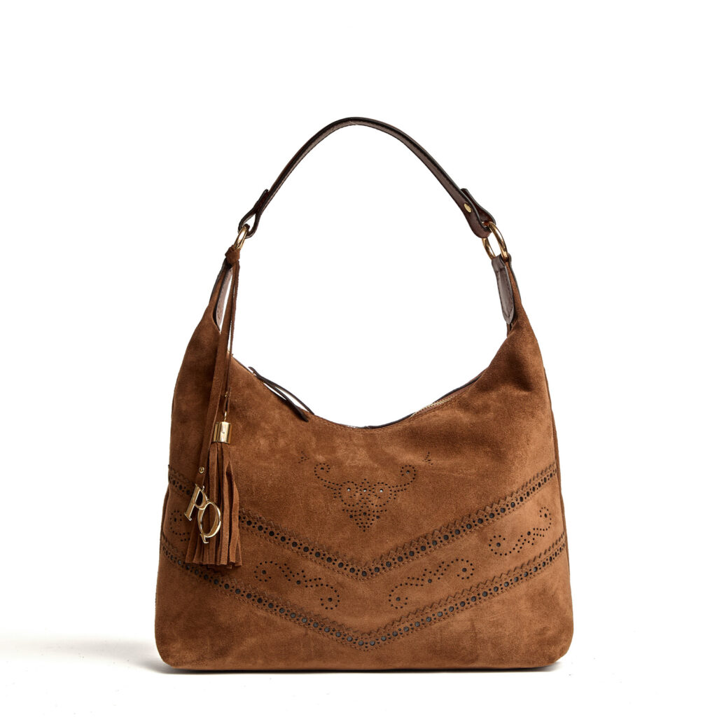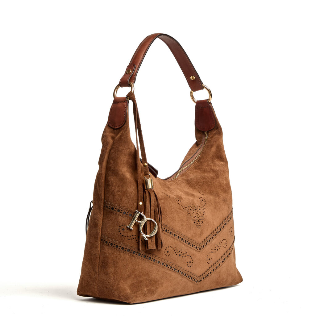 Borsa a spalla V170 in pelle scamosciata ebano