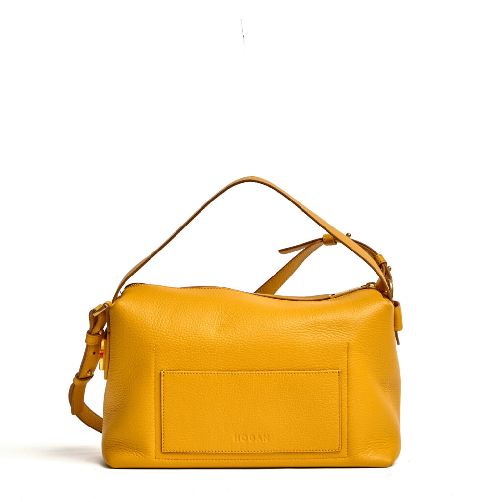 Camera bag in pelle martellata gialla