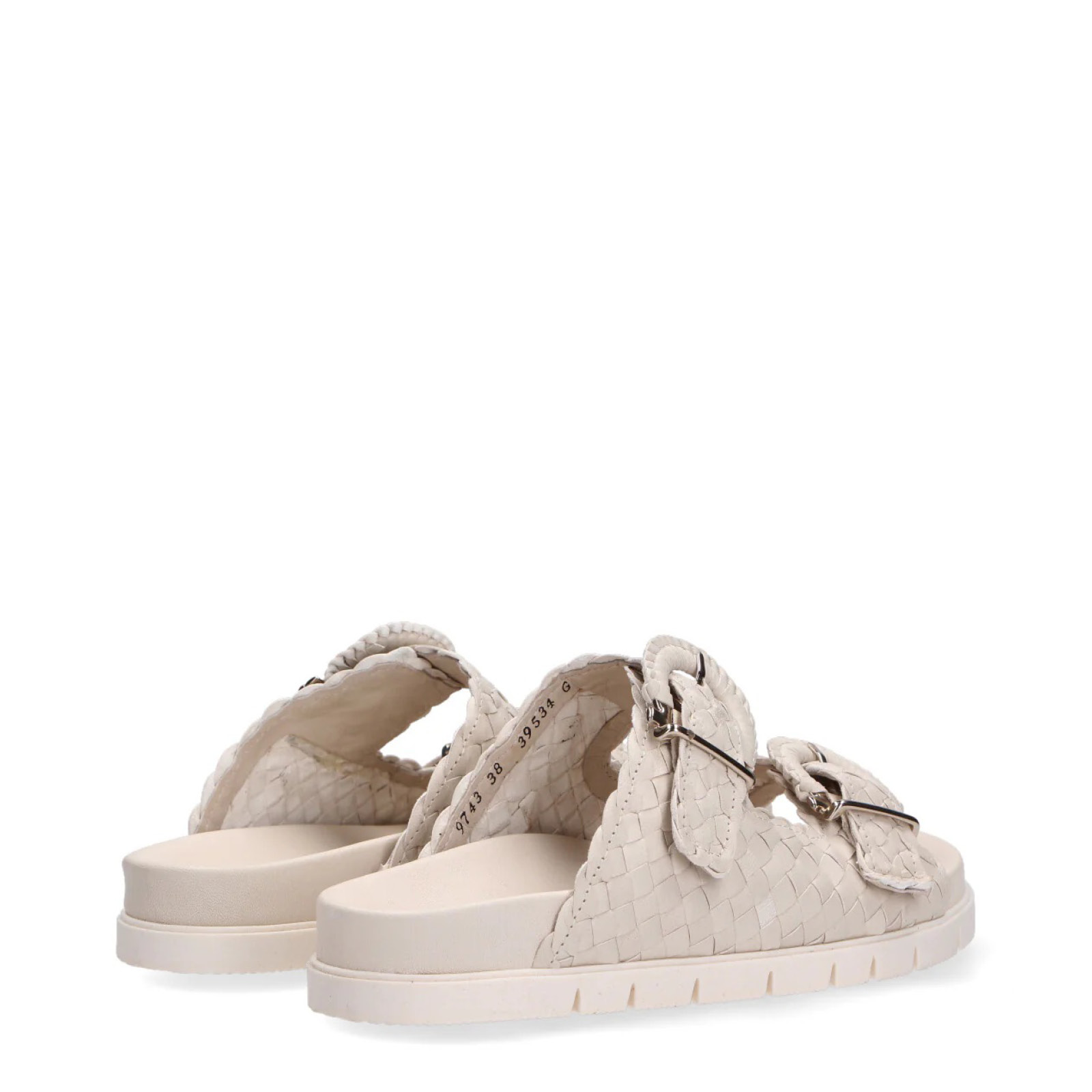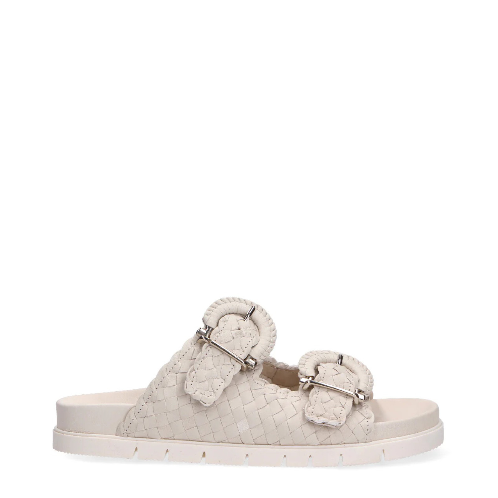 Ciabatta a due fasce in pelle intrecciata panna quantity