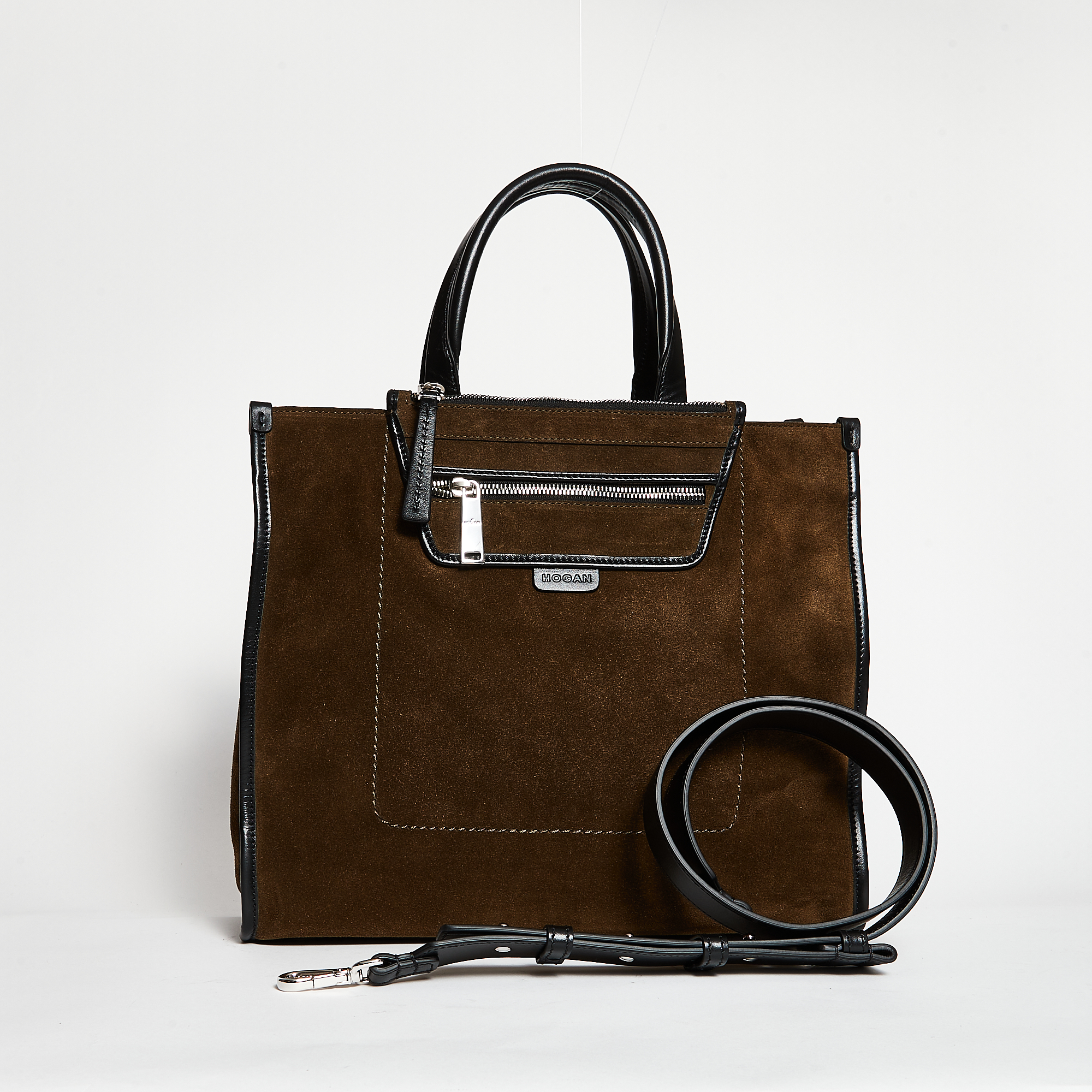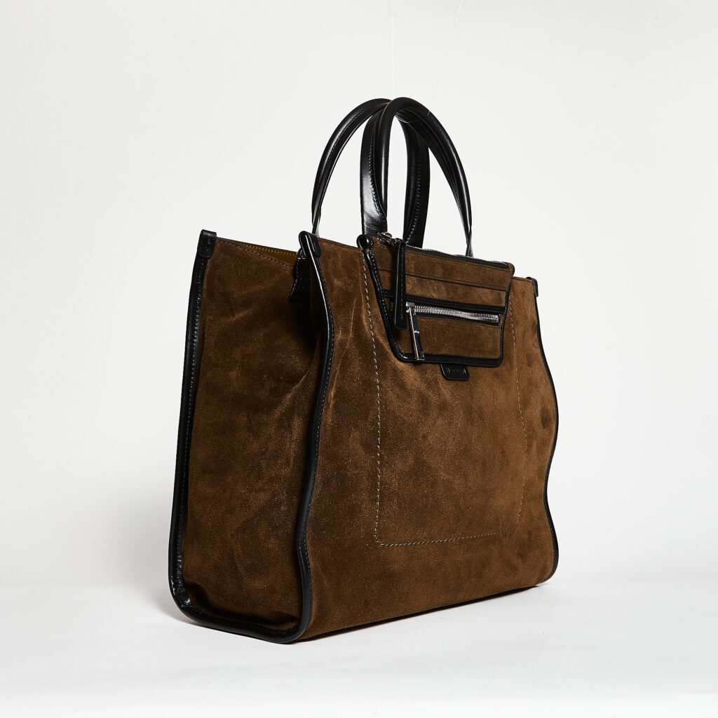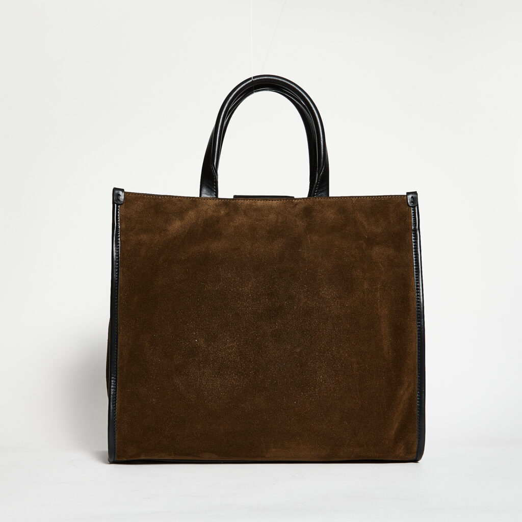 Borsa Shopper media Funzionale e dal Design essenziale Composizione: Suede Profili in pelle liscia Tracolla removibile Dimensione: 33 x 28 x 15 cm