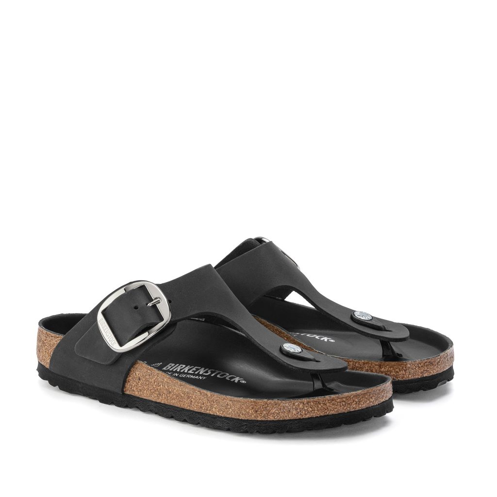 Infradito Gizeh Big Buckle in pelle oliata nera