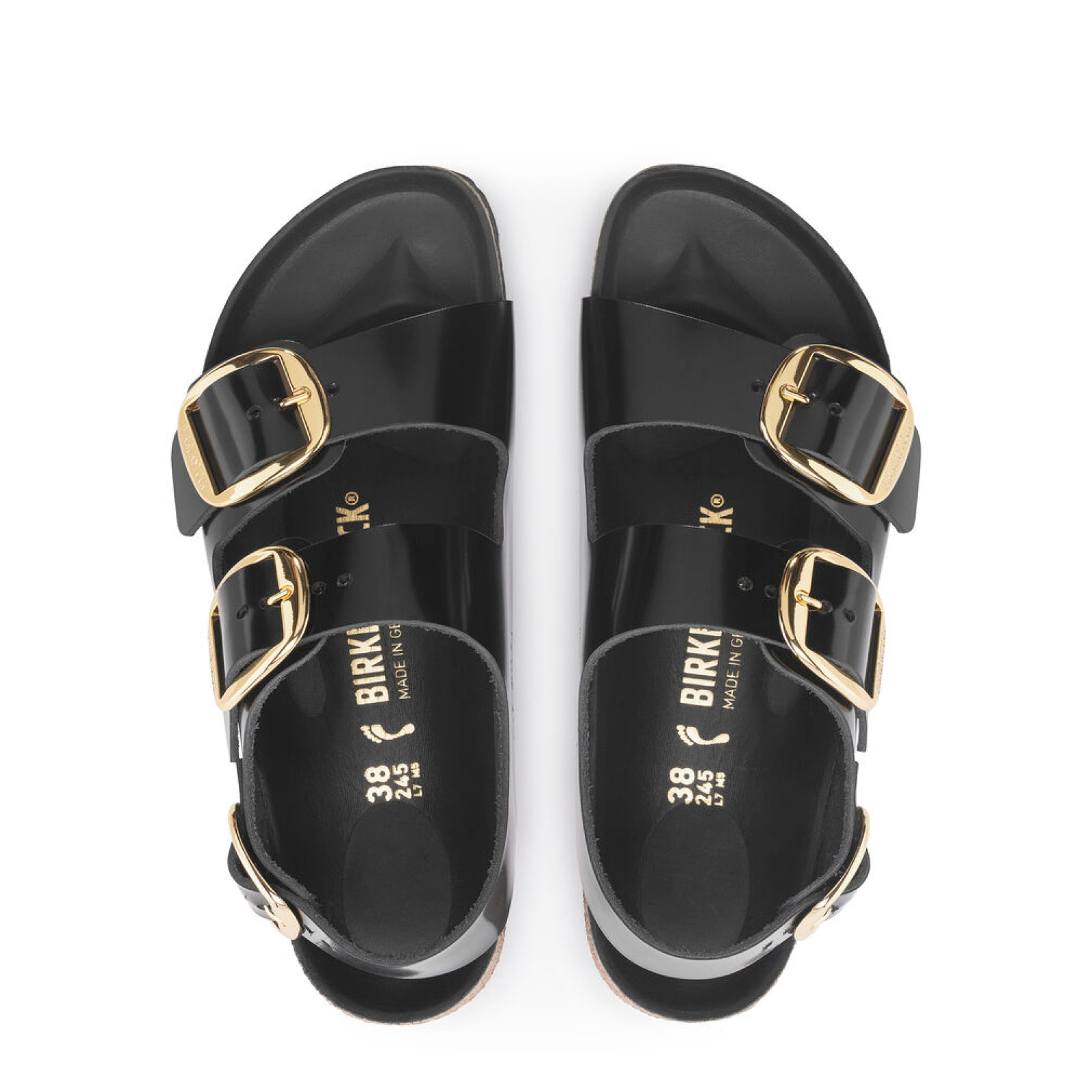 - Tomaia in pelle naturale con finitura laccata.
