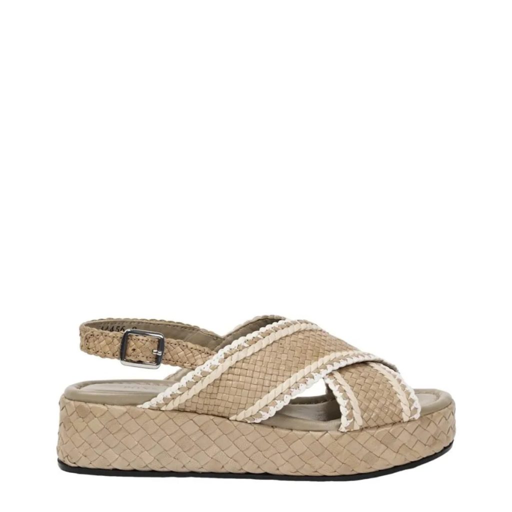 Sandalo 10734 in pelle intrecciata beige e bianco