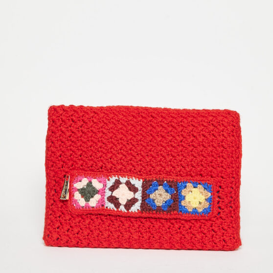 Clutch in lana crochet rossa