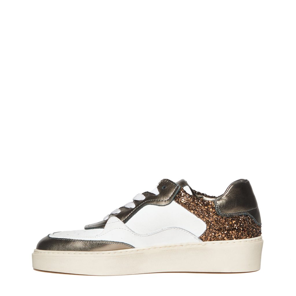 Sneakers betty in pelle bianca e bronzo