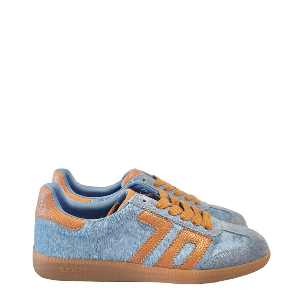 Sneakers Cloud P41 in pelle effetto cavallino e pelle scamosciata azzurra