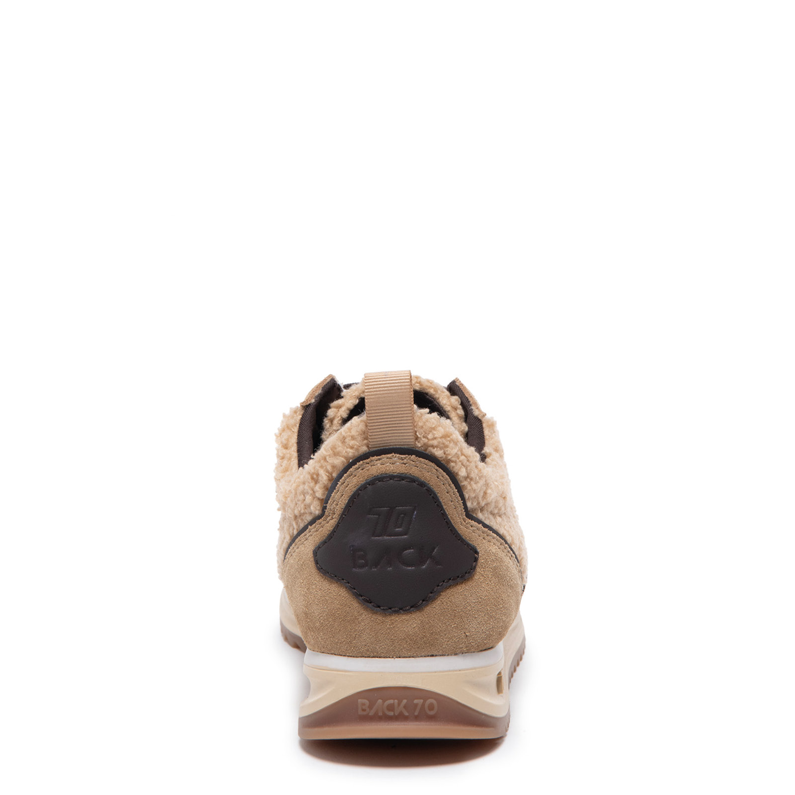 - Tomaia in caldo e accogliente tessuto teddy e pelle scamosciata.