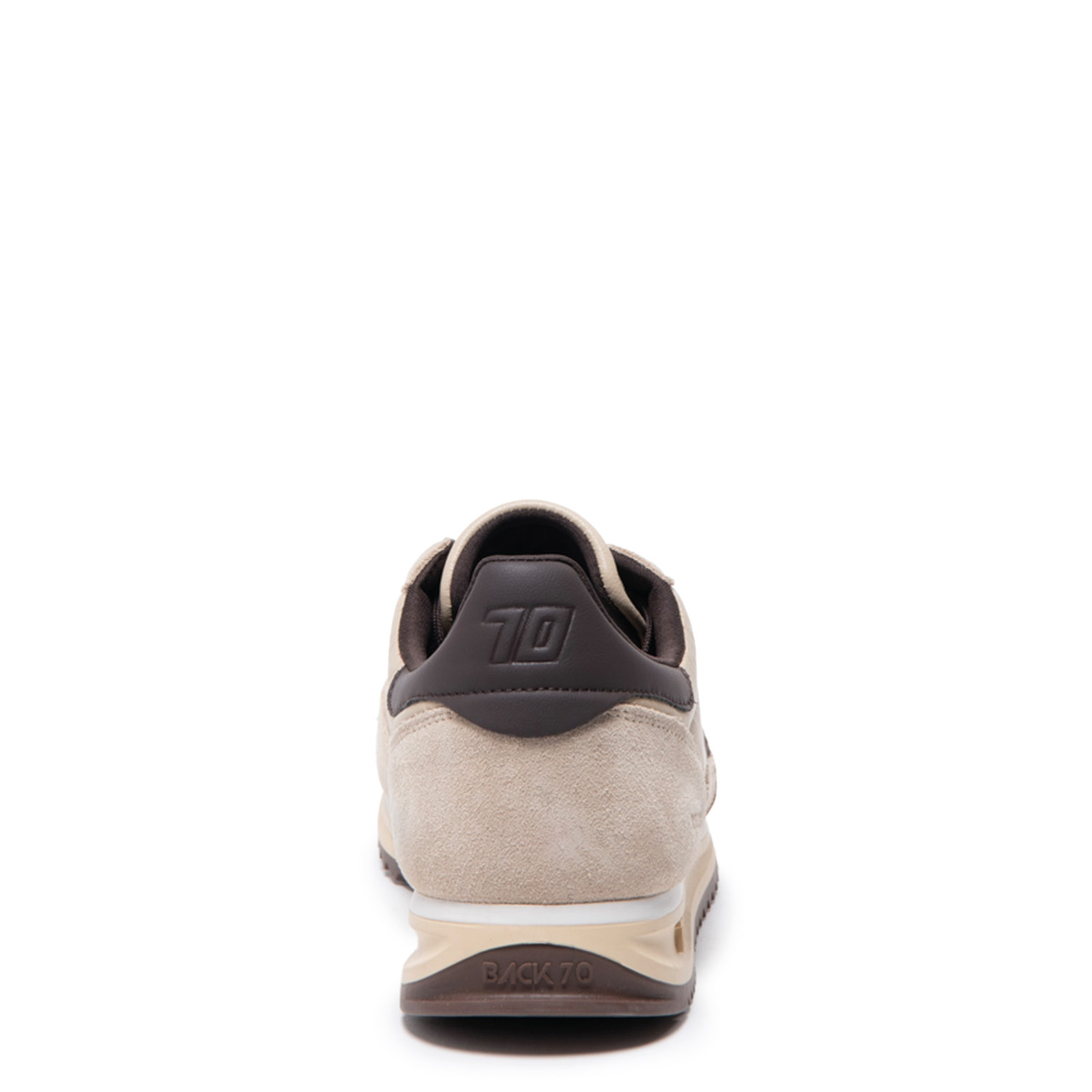 Logo e linguetta sul tallone in pelle color marrone.