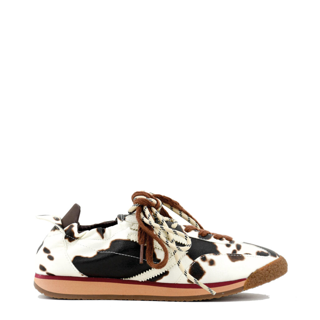 Tomaia in pelle vegana con stampa animalier.