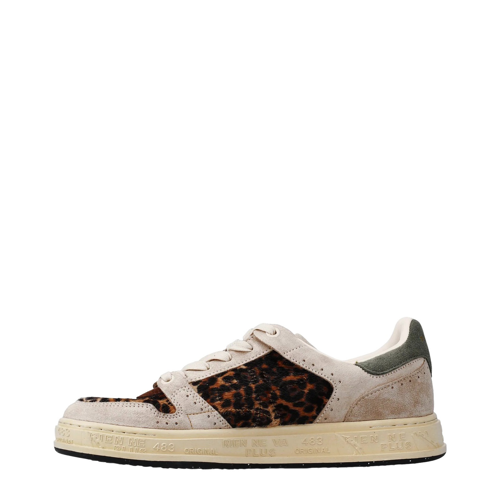 Sneakers Queen 7647 in pelle scamosciata beige e pelle effetto cavallino maculato quantity