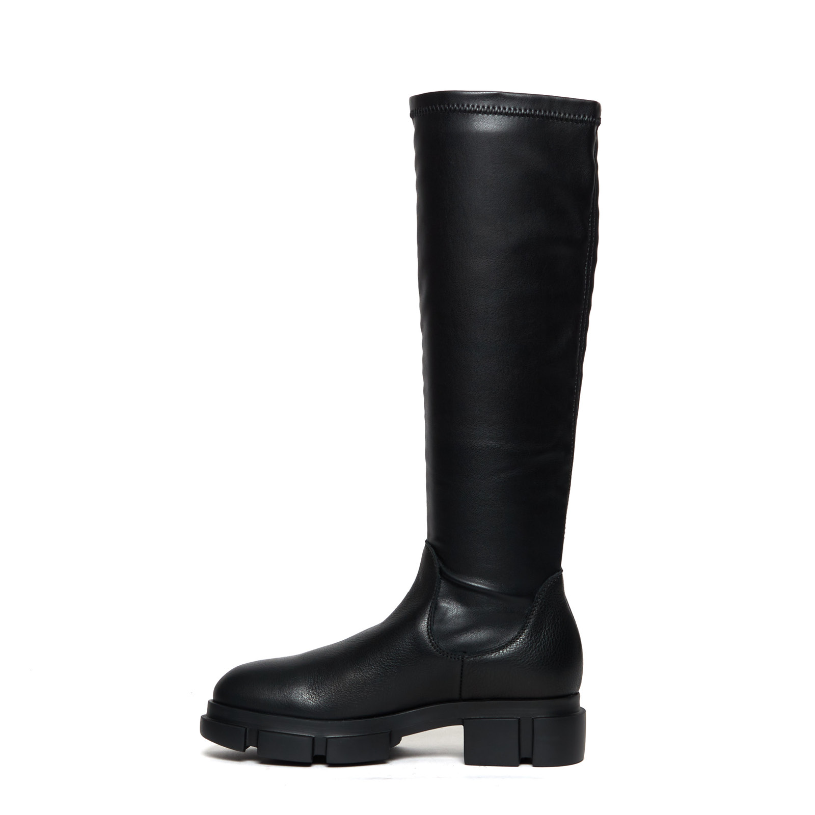 Gambale in pelle elasticizzata che si adatta perfettamente alla gamba.